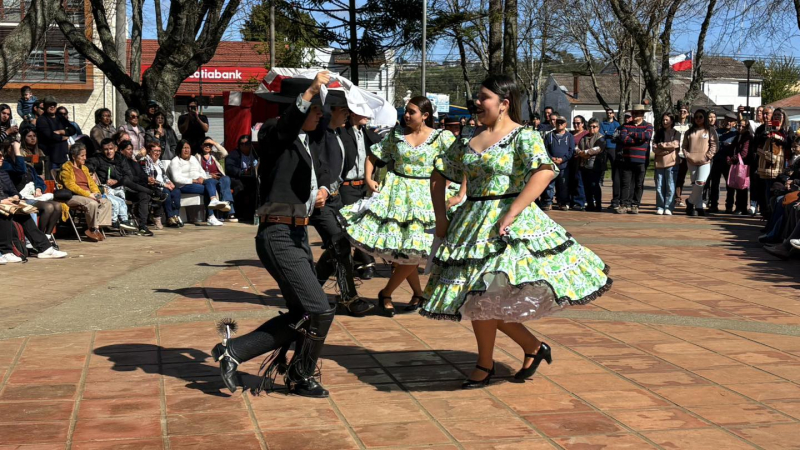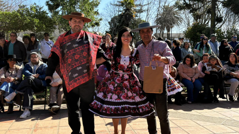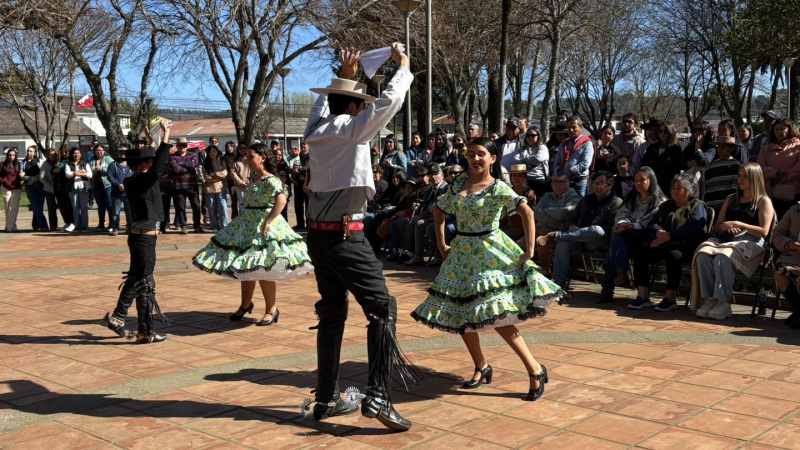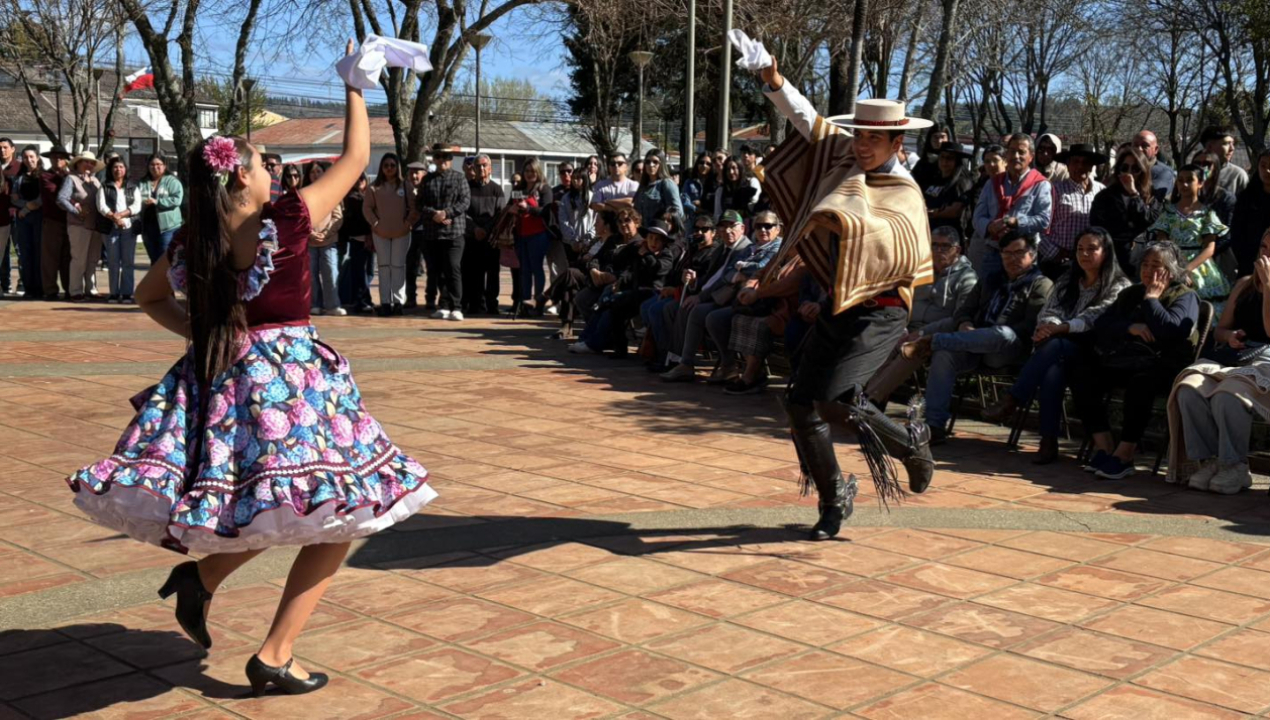 El Taller de Cueca Semillita Cuequera, dirigido por Mario Sáez Cartes, deleitó al público con sus coreografías folclóricas, mientras que se entregó un reconocimiento a la pareja de bailarines Boris y María Antonia, quienes representarán a la comuna en el Provincial de Cueca Escolar.