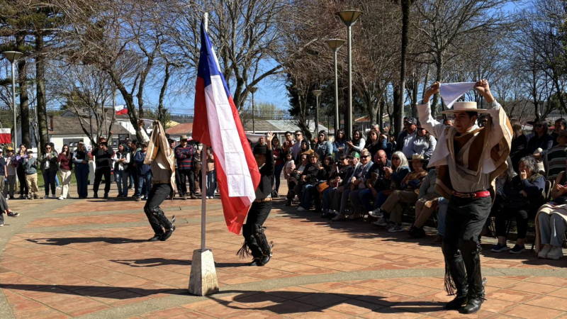 La Plaza de Armas de Arauco fue escenario del tradicional Esquinazo a la Patria, actividad que reunió a la comunidad en una jornada de cuecas, música y tradiciones chilenas.
